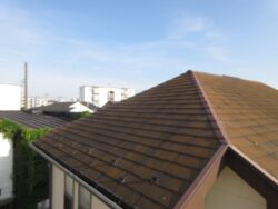 こちらの屋根材は経年劣化とともに無数のひび割れが発生してしまうため、ニチハ”パミール”などと同様、塗装工事を推奨できない屋根材です。