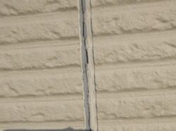 外壁材は、サイディング材でした。目地のコーキングも経年により劣化していたので打ち替え工事させて頂きます。