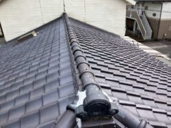 瓦自体は、完全防水ではないので台風などの横殴りの雨によっては、雨水が瓦の下に入りこんでしまうことがあります。しかし瓦の下に敷いてある防水紙がしっかりとしていれば入り込んだ雨水は軒先へと流れ出る仕組みになっています。