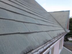 現状の屋はスレートの屋根材で外壁はラップサイディングでした。屋根外壁ともに経年劣化しておりメンテナンスの時期でしたので屋根はエコカパラ、外壁はフッ素REVO1000をご提案。