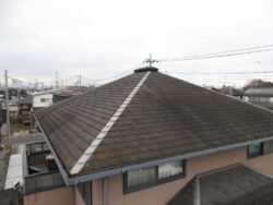 屋根外壁ともに経年劣化しており塗膜防水がしておらずメンテナンスの時期でしたので屋根は名倉ルーフ「エコカパラ」外壁にはアステックペイントの「フッ素REVO1000-IR」をご提案。