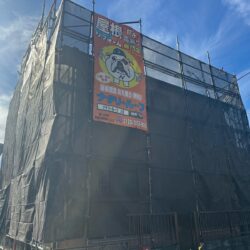 落下や飛散などないよう、しっかりと養生シートを張ります。